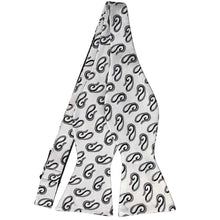 When wearing this self-tie bow tie, your wedding party will look coordinated and dashing in shades of silver paisley. There are some darker gray shades to the print that keep it subdued. Perfect for any formal occasion after the wedding day is over. Easy to match to wedding colors and any suit.