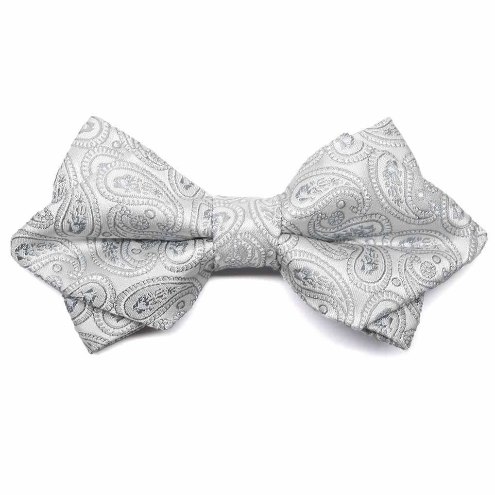 Pale Silver Darlene Paisley Diamond Tip Bow Tie