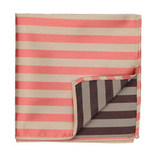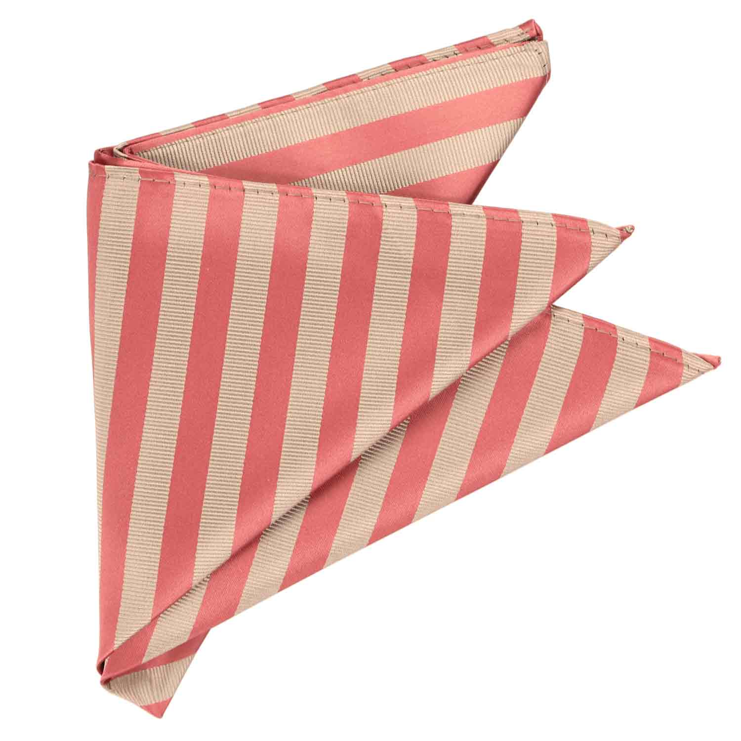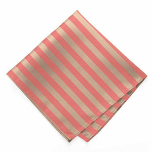 Tuck some beachy vibes into your jacket with this palm coast coral and beige striped pocket square. It features the perfect amount of coral thanks to the alternating ribbed and satin stripes. Wear it for a destination wedding or as a sophisticated addition to your work week. Pair it with your favorite solid color tie or the matching necktie or bow tie (sold separately).