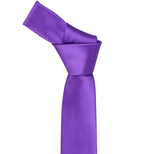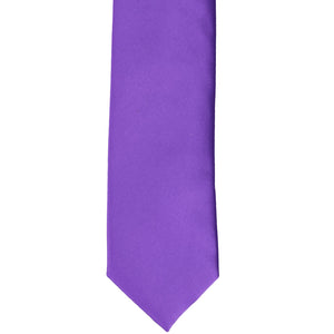 This pansy purple slim tie is striking. Whether you're the groom, a groomsman or attending a job interview, this regal hue is the perfect choice to showcase your style and confidence. Speaking of formalwear, this modern-cut tie pairs beautifully with a wide range of suit colors, like charcoal and navy blue. Since the tie is skinnier (but not too skinny) we recommend wearing it with a fitted suit. Matching pocket squares are sold separately for a fully coordinated look.