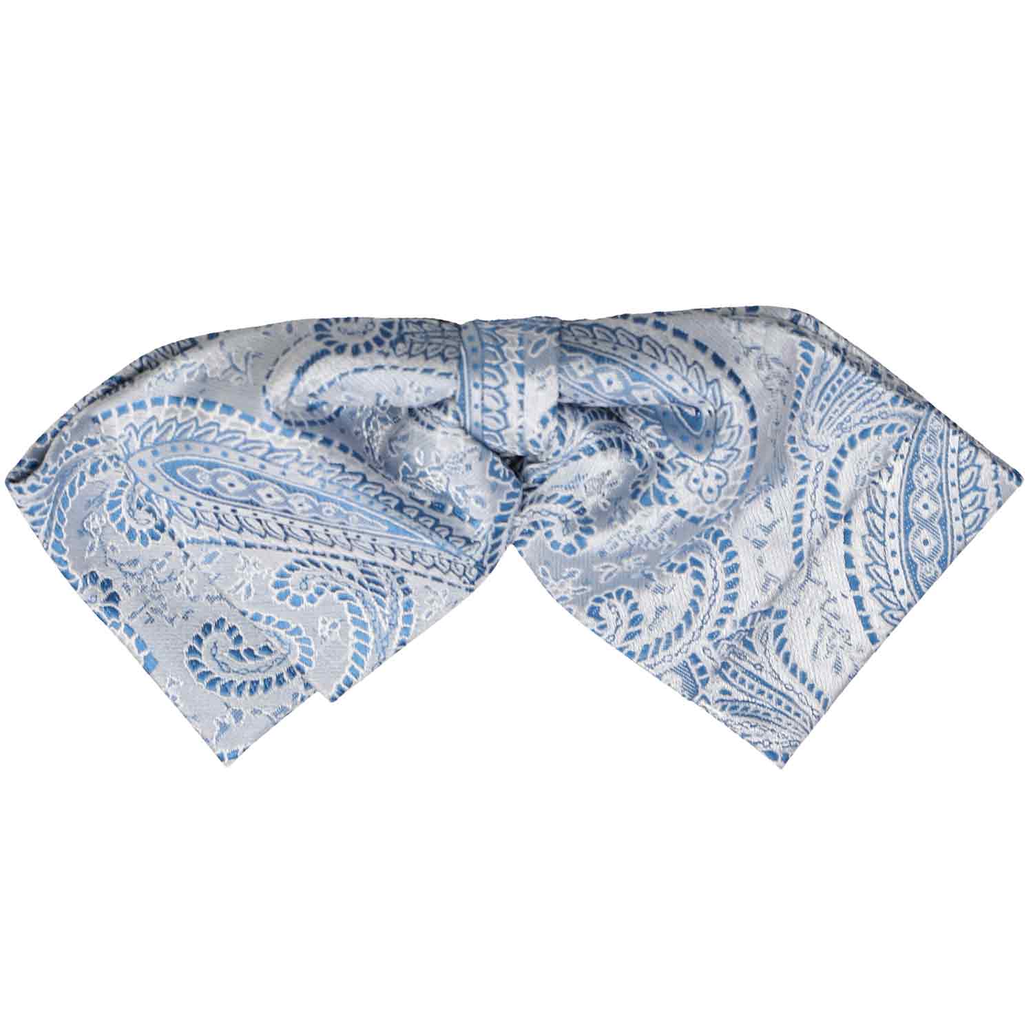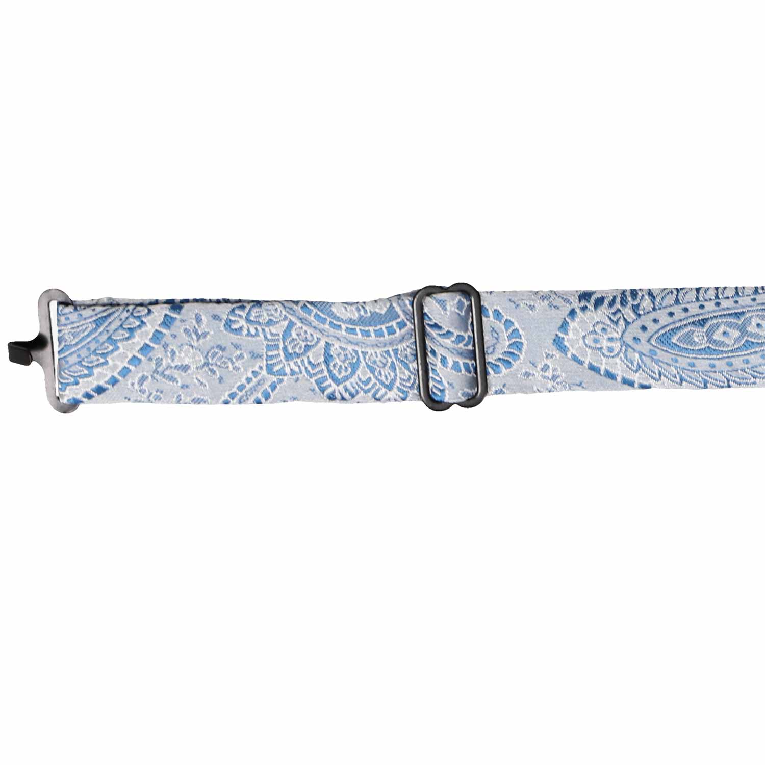 Exclusively ours! A pre-tied, floppy bow tie in a classic, pastel blue paisley pattern. The band collar adjusts to fit most men and women. Suited for matching women's uniform wear or men's vintage-inspired attire.