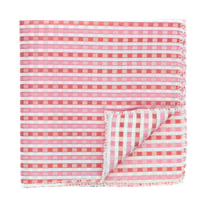 Complete your wedding day look with this pink, coral, and white gingham-style pocket square. Its blend of soft hues ensures a seamless match with the bridal party, making it an ideal choice for groomsmen and even the ring bearer. Whether paired with a classic navy or gray suit or a laid-back suspenders and slacks combo, this versatile pocket square adds the perfect finishing touch. For a fully coordinated look, don’t forget to check out the matching neckwear, available in a variety of sizes!