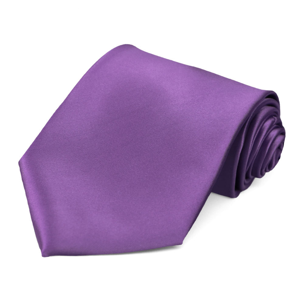 Looking for a purple tie? You found it. Just as the name suggests, this is a basic purple hue. Not too light, bright, dark or dull. Just purple. This solid color tie is made from durable material. It's soft and thick with a satin sheen. You can dress it up for elegant formalwear (hey, wedding season) or wear it to wow at work. However you decide, we think you'll agree that it ties a fantastic knot.