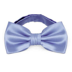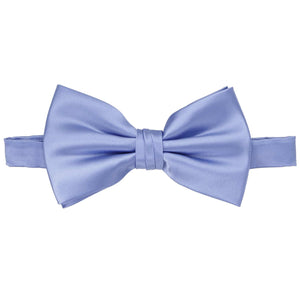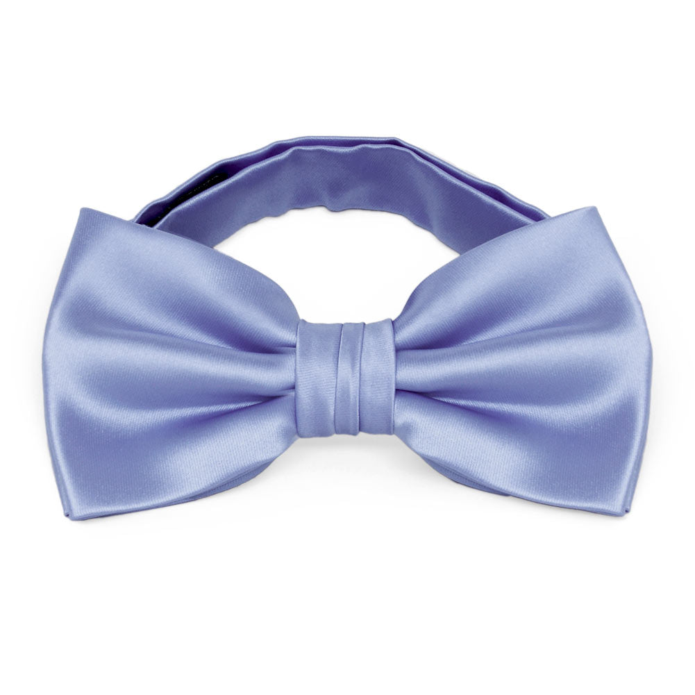 Stand out on your wedding day (or any day) in this periwinkle bow tie. It's the perfect balance of blue and purple tones. The solid color style is sophisticated and easy to match to suits and casual attire, alike. Speaking of suits, for those special occasions our customers are wearing periwinkle with navy blue, gray and tan suits. Our periwinkle premium line comes in other styles, like neckties, so you can match each groomsman's personality. We also carry sizes for the ring bearer!