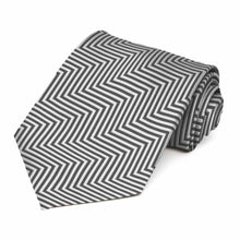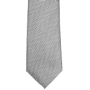 Make a bold statement with this eye-catching pewter chevron tie, designed to stand out with its distinctive gray and silver zigzag stripes. Perfect for big and/or tall men, this tie adds a touch of sophistication when paired with a dark suit or dark slacks and a button-down shirt. Whether you're attending a wedding or heading to the office, you'll be sure to turn heads and collect compliments all day long.