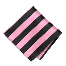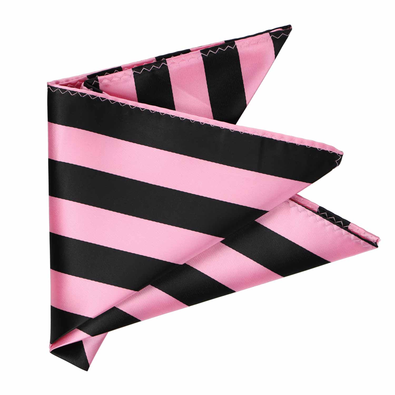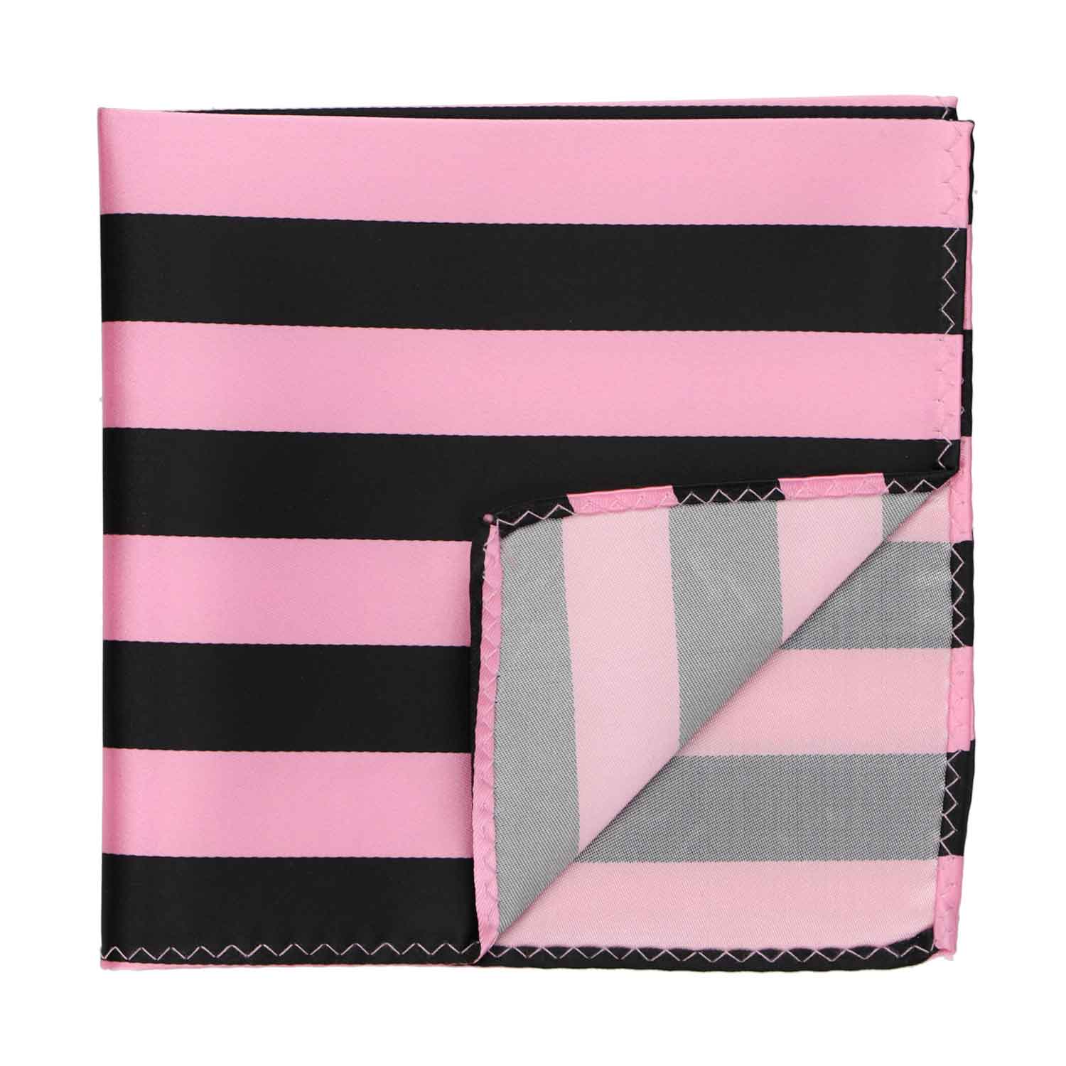 This pink and black striped pocket square measures a large, 12-inches by 12-inches to suit a wide variety of folds. The tightly woven material creates a smooth finish for a sharp look. Matches our pink and black striped ties and bow ties.