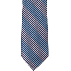 Having a gender reveal party and looking for just the right tie for the occasion? Look no further! A subtle geometric design is overlaid on this pink, blue and navy striped tie. Those lighter pink and blue stripes equally stand out against the darker navy, so it’s perfect for the new dad whose preference is a happy, healthy bundle of joy. Try it with a button down and slacks or a navy blue suit, depending on the formality of your occasion.