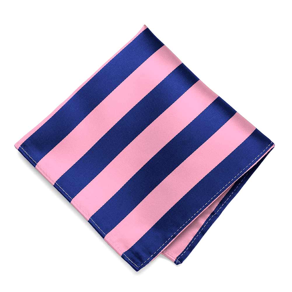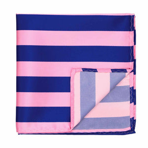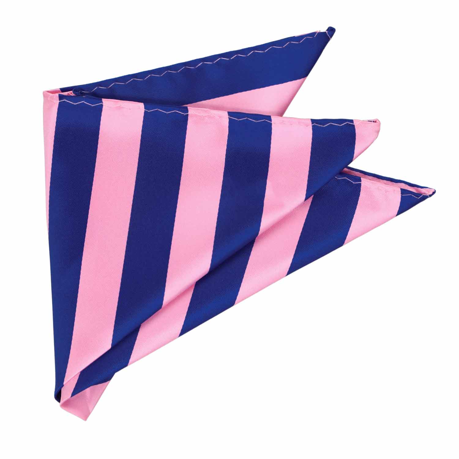 This pink and royal blue striped pocket square measures a large, 12-inches by 12-inches to suit a wide variety of folds. The tightly woven material creates a smooth finish for a sharp look. Matches our pink and royal blue striped ties and bow ties.