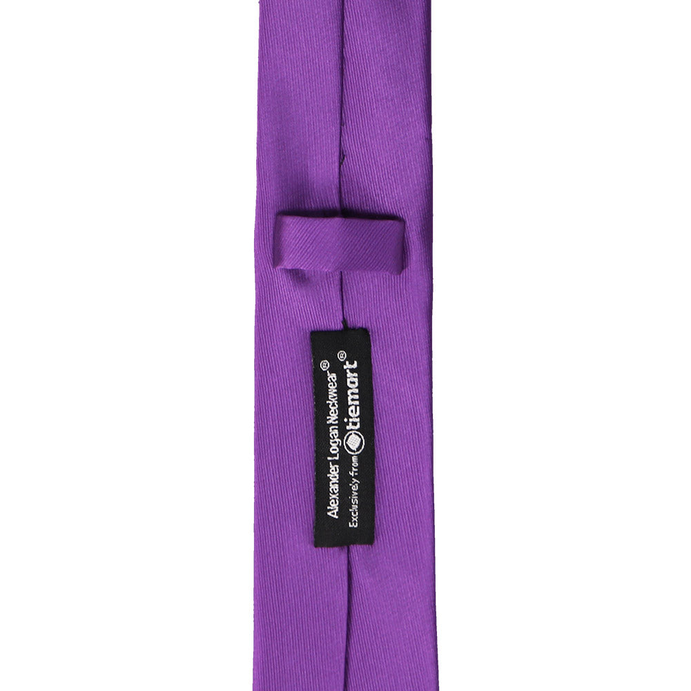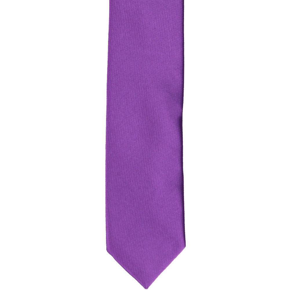 This plum violet skinny tie is our thinnest width tie at 2-inches wide. (That's about 1.5-inches skinnier than a regular tie.) It's made from heavyweight woven material with slight ribbing. The finish is in between shiny and matte, which we think you'll like. There are matching pocket squares (sold separately) if you require one.