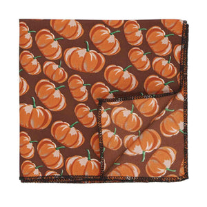 There are two things you need when fall officially arrives: Pumpkin spice and a coordinating pocket square. (We can help you with the latter.) This pocket square features an all-over pumpkin pattern in rich autumn hues. We designed it to match our pumpkin-themed necktie (sold separately) but it can also be worn alone. Fold it into a navy blue suit pocket for a look that will stand out against those falling leaves.