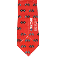This tie is designed, printed and dyed at our Mundelein, Illinois warehouse. The design is printed and permanently pressed directly onto a solid white necktie via dye sublimation. (This is not an embroidered or woven tie.) Color and placement of design may vary slightly from tie to tie. Because the ties are made to order, please allow up to three business days before shipment.