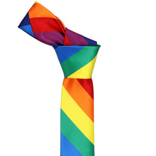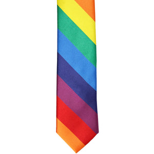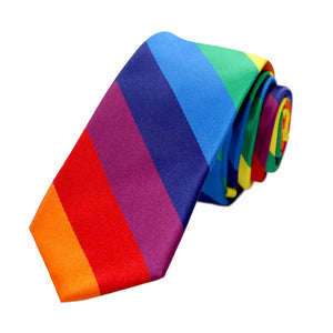 Make a statement in this fun and colorful rainbow striped skinny tie. We made this one in our skinniest width. It's only 2-inches wide and full of personality. The material on this trendy, striped tie is heavyweight woven polyester with a smooth, satin finish.