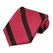 Get ready to look sharp when you wear this red and black collegiate striped tie as part of your school uniform or while rooting for your favorite team. The wider stripes feature a soft, smooth finish while the thinner ribbed stripes add texture. Should you ever need to take this tie formal, simply wear it with your favorite black suit.