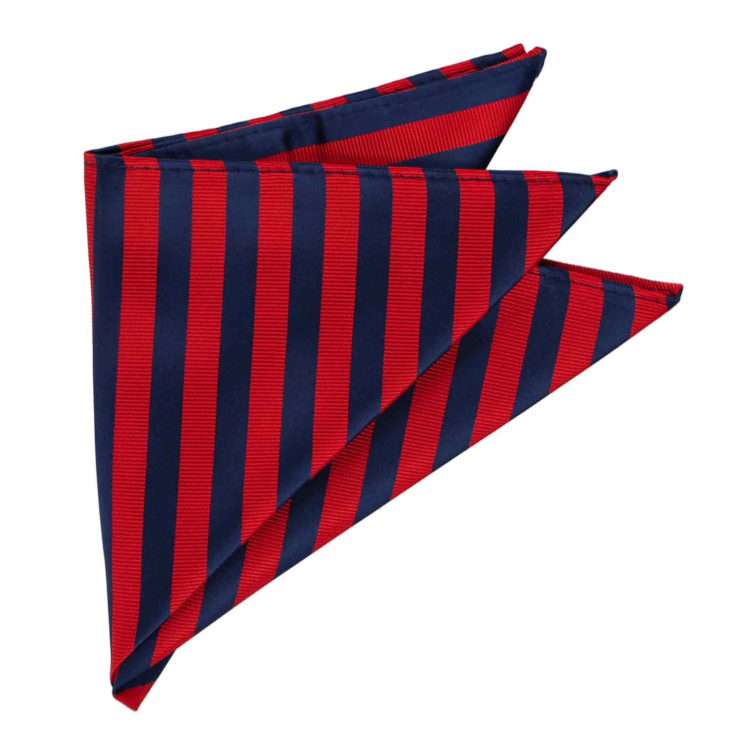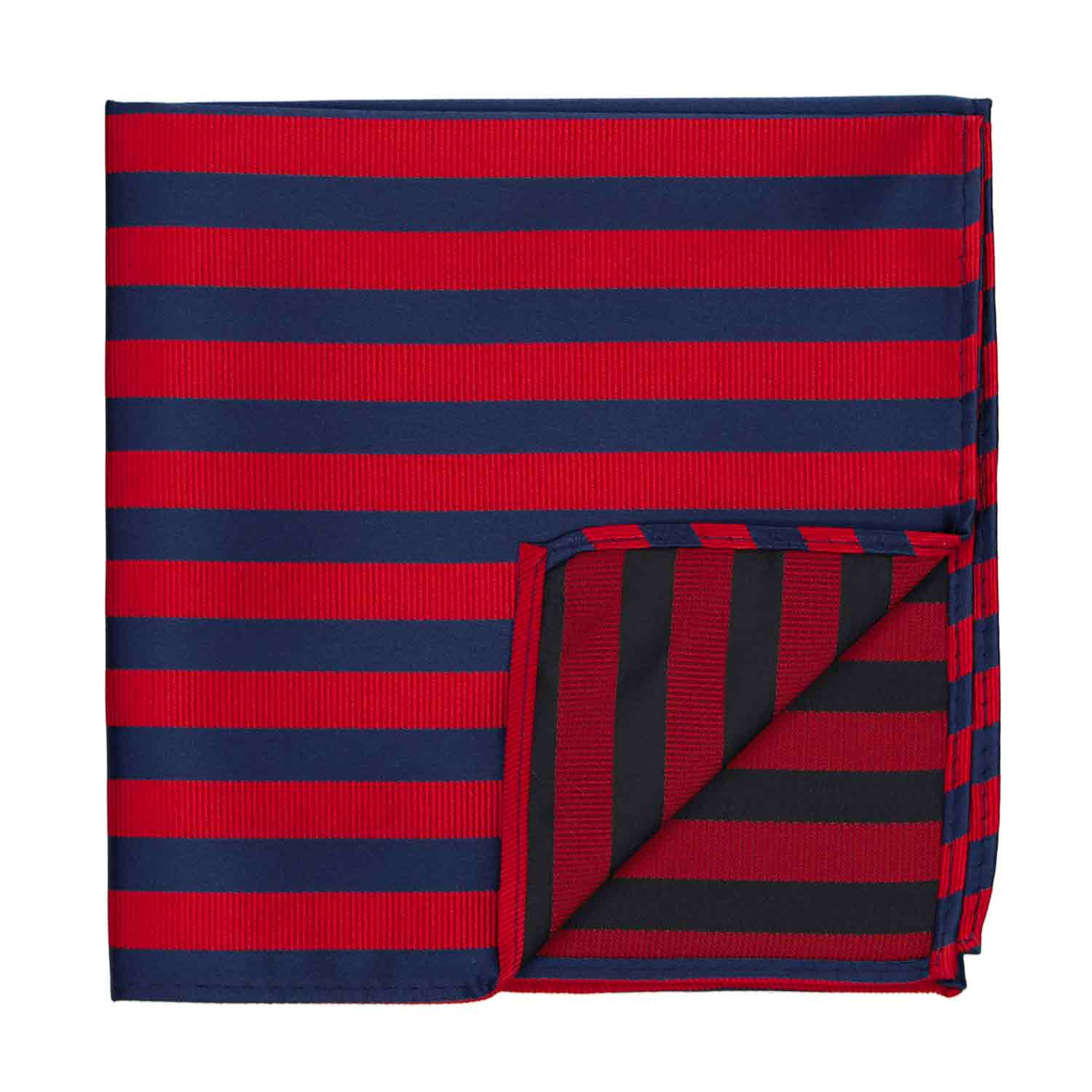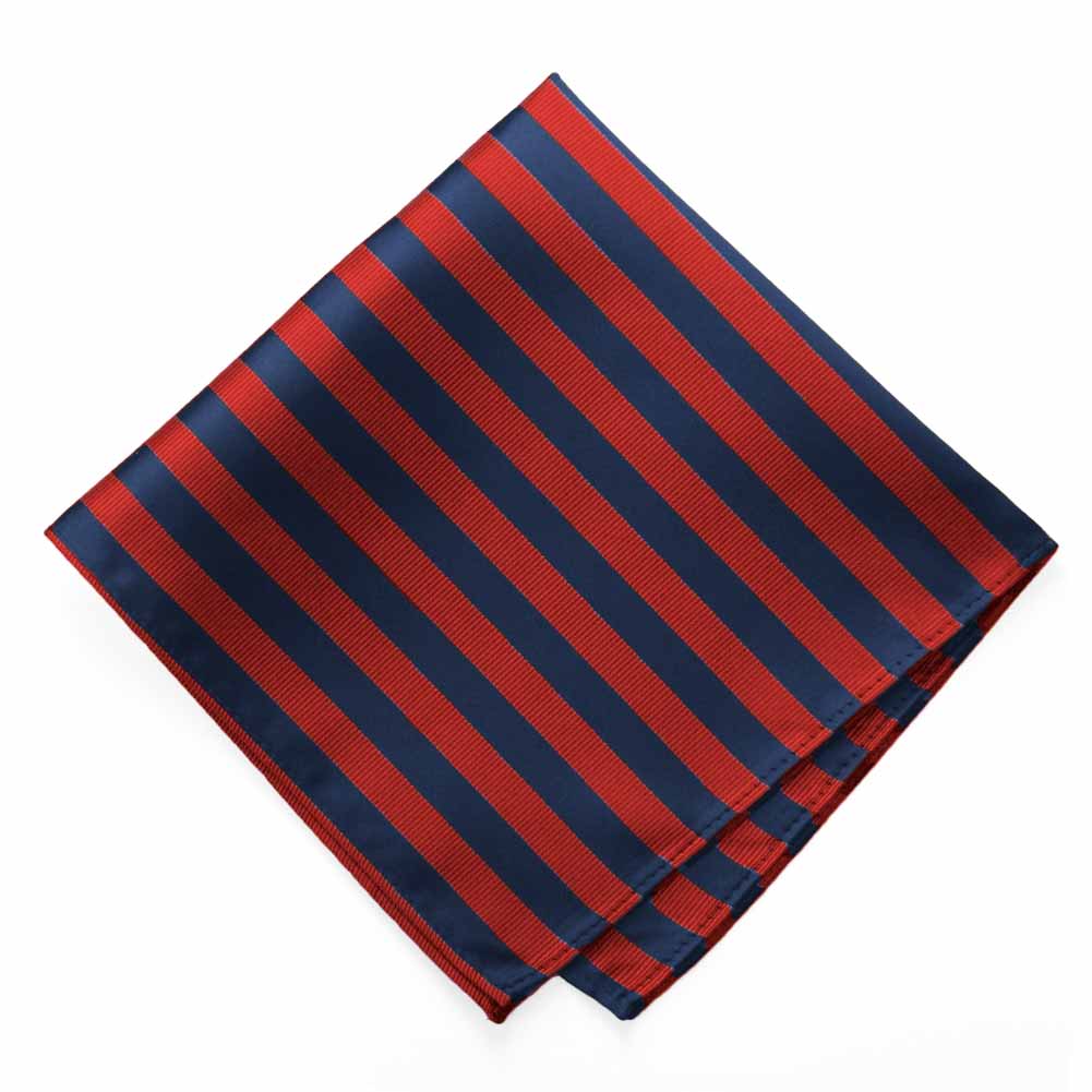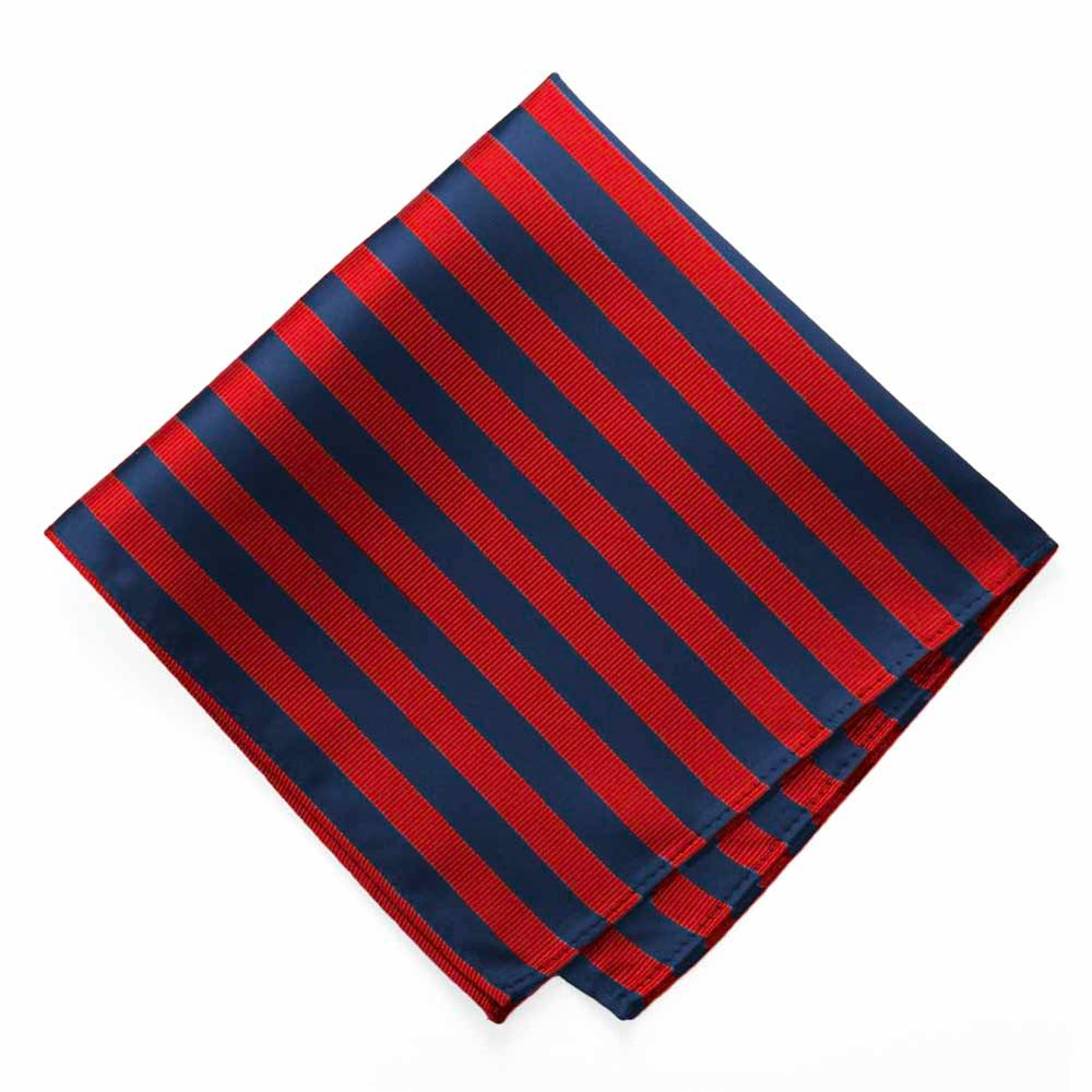 Show your school spirit or Fourth of July pride with this red and navy blue pocket square. It features alternating ribbed and satin finish stripes. Wear it alone for a modern look or pair it with the matching tie or bow tie, sold separately. For a bit of contrast, it looks great with a solid color tie, as well.