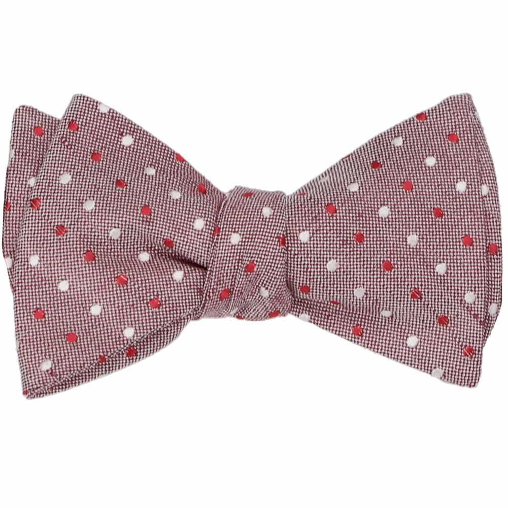 Take a closer look at this soft red self-tie bow tie and you’ll see that the subtle textured background is covered in fun (but sophisticated) red and white polka dots. Try pairing it with a button down and black or navy blue slacks for the office. You can definitely take it more formal with a suit, as well. Whether you wear this versatile bow for work, a holiday or that big meeting, you’re sure to make an impression.