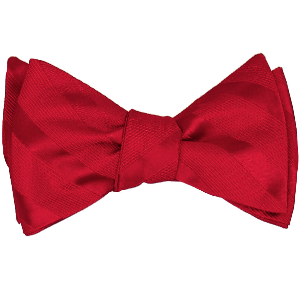 We've elevated the standard red bow tie with this elegant, textured stripe pattern. It features alternating satin and ribbed stripes in tone-on-tone red, so you can wear it just as you would a solid color bow tie—but with a more elegant and refined feel. This is a great choice for formalwear or that important meeting at work. We suggest adding the matching pocket square to your jacket for dressy occasions.