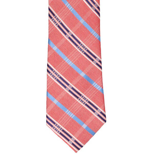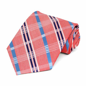 You're going to look great in this plaid tie. The pattern is light and bright in faded red, white and blue and definitely gives us summer vibes. Elevate your style by pairing it with a complementary light blue dress shirt.