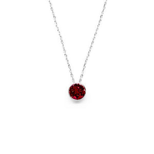 Perfect for weddings! Coordinate your bridesmaid's necklaces and groomsmen's ties with these small and simple (yet elegant) dark red-colored necklaces. The bezel-set circle pendant is made with Swarovski® crystals and includes an adjustable sterling silver chain. Each necklace has a unique code that can be entered at www.swarovski.com/crystals to verify the authenticity of the crystal.
