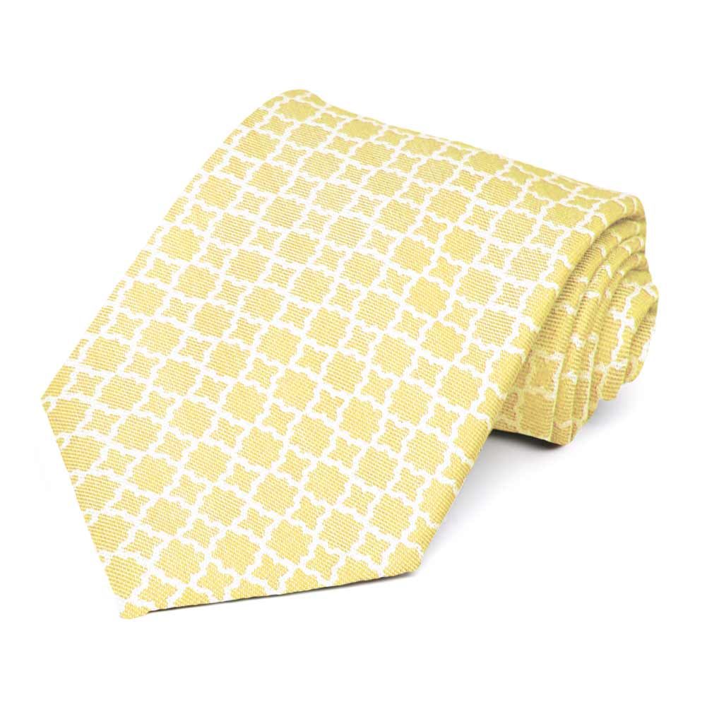 The popular trellis design is a favorite among interior designers, artisans and architects. But it looks great on a tie, too! The delicate saffron yellow color gives this extra long tie a mellow feel. It’s suitable for the office or a special occasion (think weddings, family photos, Easter Sunday). For formal wear, be sure to purchase the matching pocket square (sold separately) to complete your look.