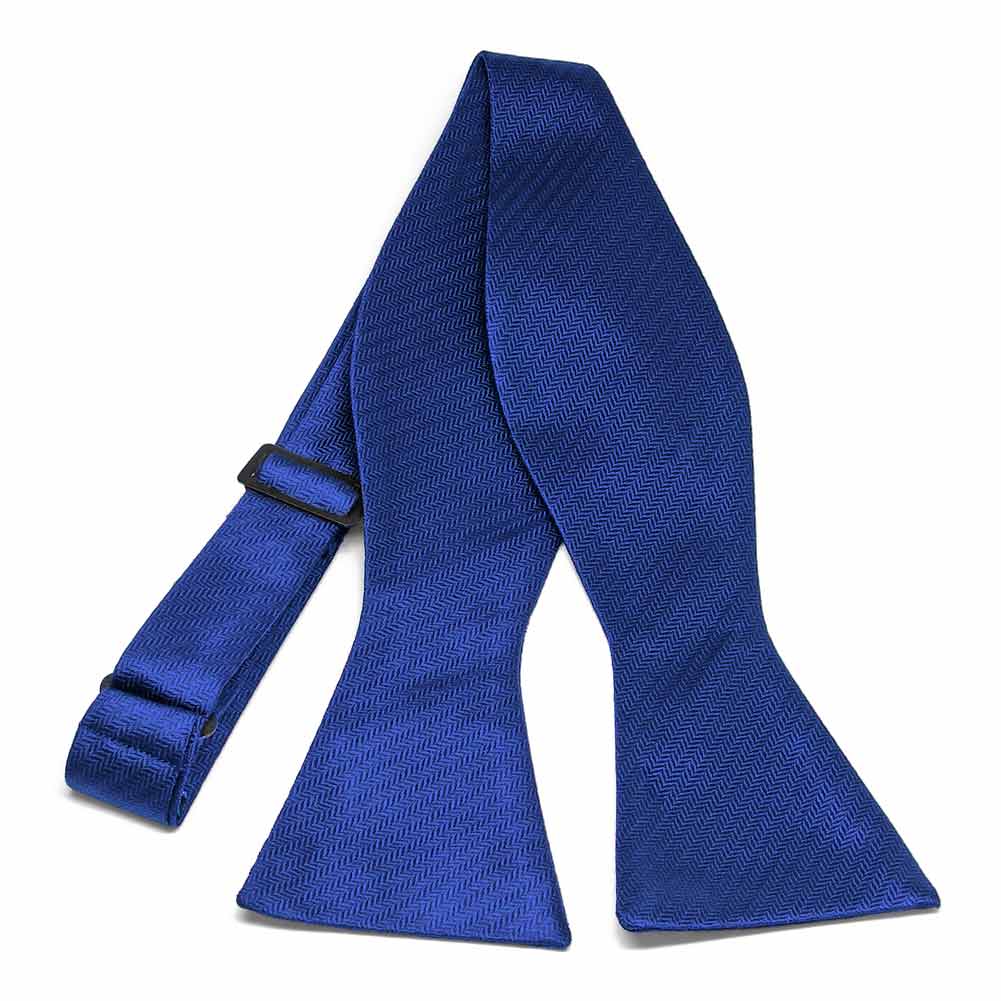 Upgrade from a solid color bow tie to this tone-on-tone sapphire blue herringbone self-tie bow tie. As easy to match as a solid color, but with eye-catching woven details. It works great as a stand alone for everyday work wear, but can easily do formal when added to a black, navy blue or tan suit. Don't forget to purchase the matching pocket square for those dressy occasions.