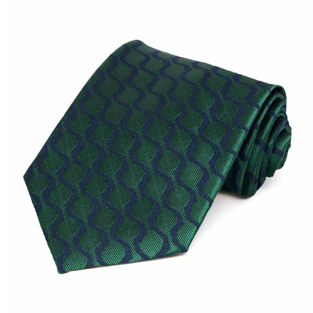 This is your new go-to tie. The dark green and navy blue necktie will keep you looking conservative yet stylish at the office. The woven scallop pattern pairs effortlessly with any black, gray or navy blue suits you have hanging in your closet.