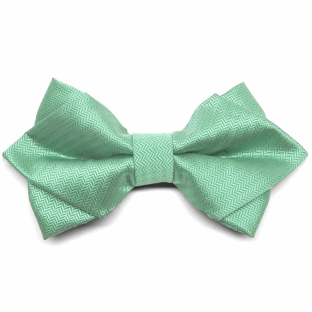 Perfect for formalwear and easy to match! Go all out with this pre-tied seafoam diamond tip bow tie. This woven herringbone bow features elegant diamond tips in the front and traditional bow tips in the back. The adjustable band collar expands to fit most adult neck sizes.