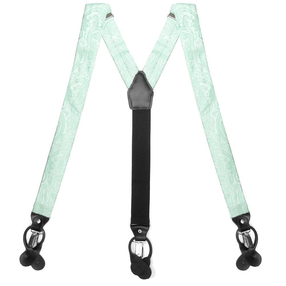 Bring a fresh, elegant touch to your wedding day attire with these stunning seafoam paisley suspenders—designed to keep your groom and groomsmen looking polished and coordinated. The soft seafoam hue, paired with an intricate paisley pattern, adds a perfect blend of sophistication and charm, making these suspenders ideal for spring, summer, beach, or garden weddings.