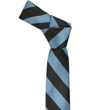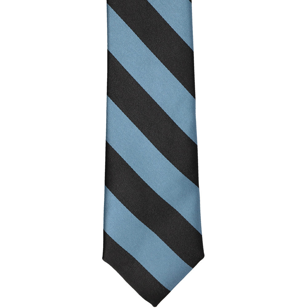 This serene and black striped tie is a top pick for everyday, school spirit or uniform wear. It's cut to a modern, 2.5-inch slim width for men and teens. Crafted from heavyweight woven material with a smooth, satin finish.