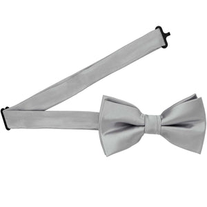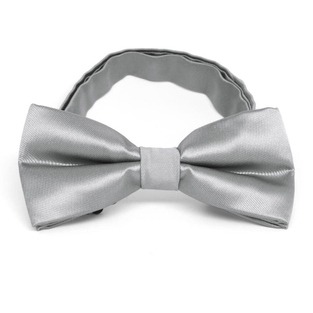 You'll find yourself reaching on repeat for this silver bow tie. Whether it's a day at the office or a wedding celebration, matching this neutral solid color is simple. Opt for classic style by pairing it with a black suit or embrace a more modern feel with a navy blue suit. And when the occasion calls for that extra touch of elegance, our matching pocket squares (available separately) are ready.