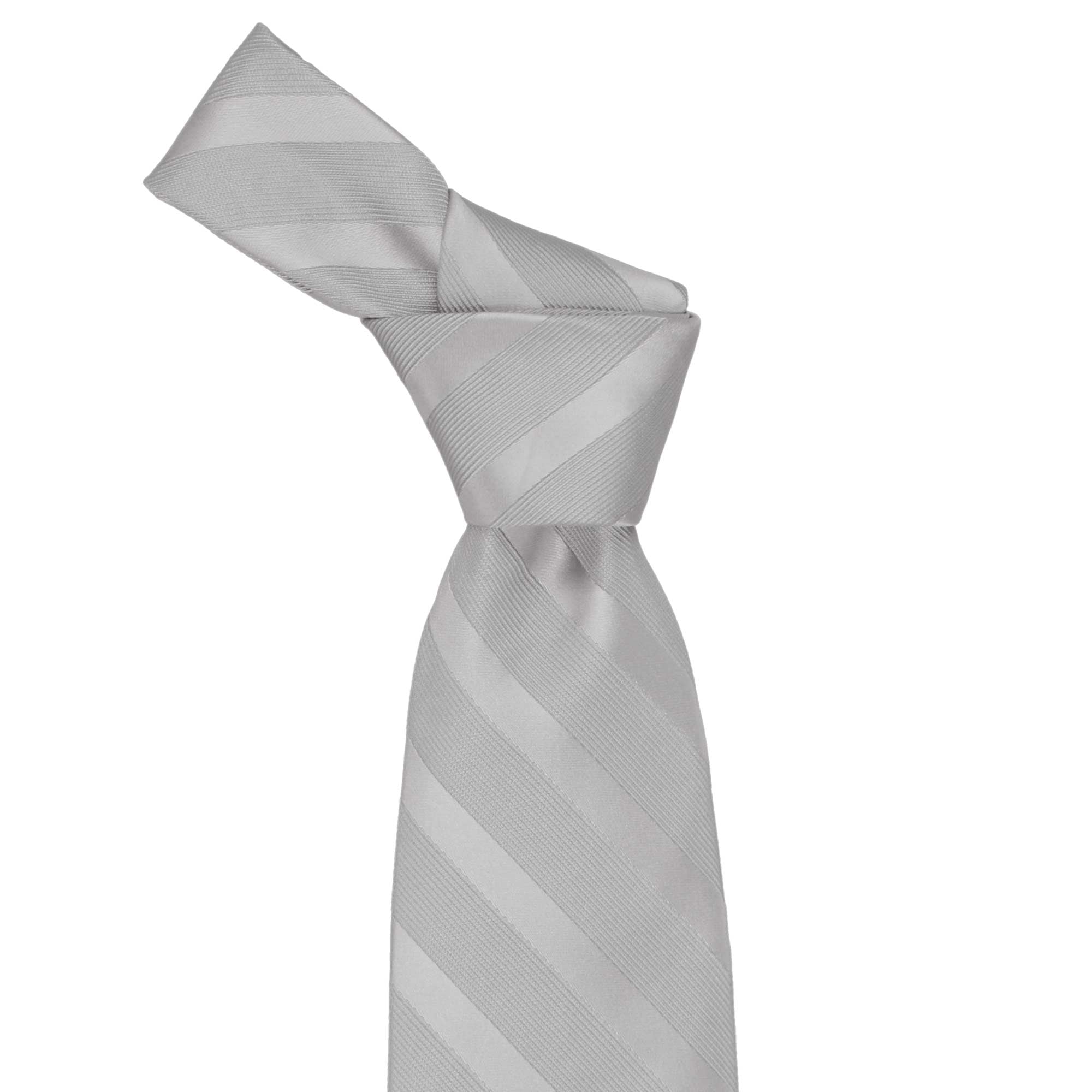 When the occasion calls for formal attire, reach for this silver tone-on-tone striped extra long tie. This sleek tie features alternating stripes in ribbed and satin textures, which elevate it beyond a solid color tie. The extended length caters to big and/or tall men for a comfortable, proper fit. Silver is such a versatile color, so go ahead and pair it with any suit in your closet. Finish your dressed-up look with a matching pocket square (sold separately).