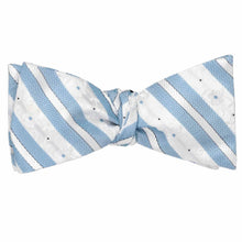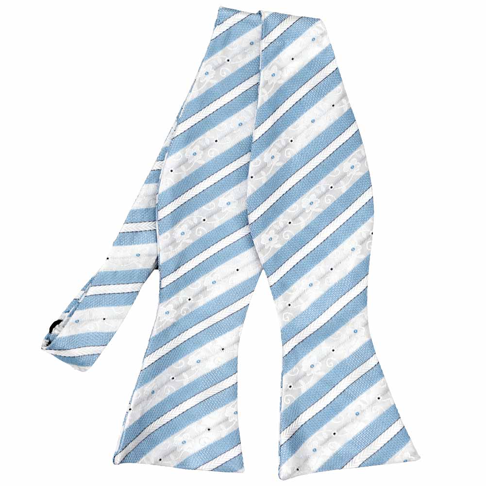 Add a fresh touch to your wardrobe with this sky blue and white self-tie bow tie! Featuring an elegant blend of floral vine patterns and textured stripes, this bow tie strikes the perfect balance between classic and contemporary style. The soft sky blue hue makes it an ideal choice for spring weddings, Easter celebrations, or any occasion where you want to brighten up your look. The self-tie design ensures a personalized fit, while the versatile color pairs effortlessly with gray, navy, or tan suits.
