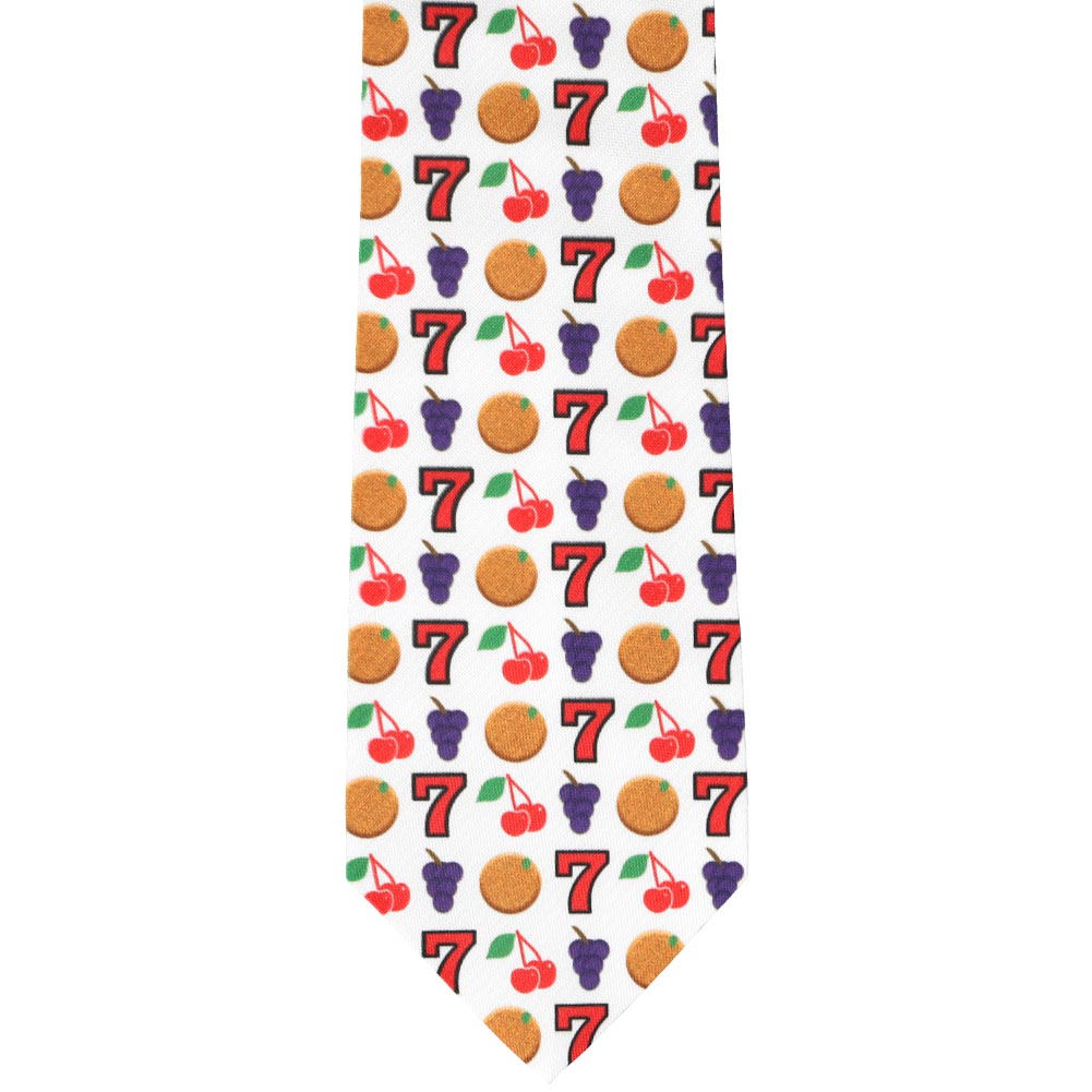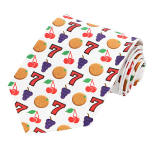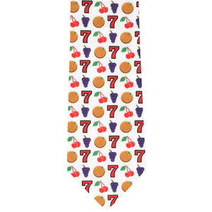 Pull the lever and get ready for endless hours of style! This fun slot machine necktie features classic reel symbols on a white background. (The back of the tie is solid white.) Wear it with a suit or slacks and a button down—either way it's a winning combination.