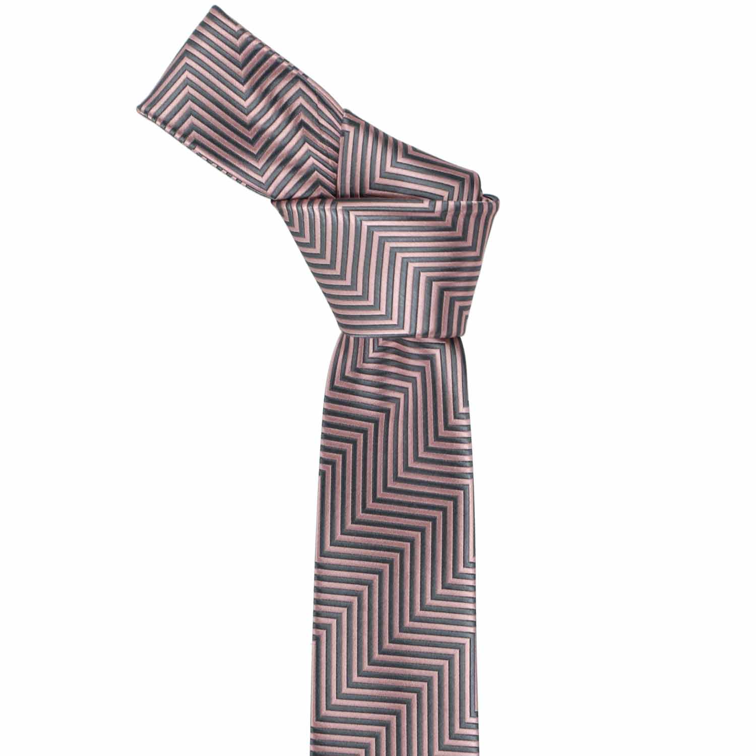 Step up your style with this sleek chevron-patterned slim necktie in bold pink. The striking zigzag design adds a modern touch, perfect for making a statement. Pair it with a tailored light or dark gray suit to shine on your wedding day or leave a memorable impression at that important work meeting.