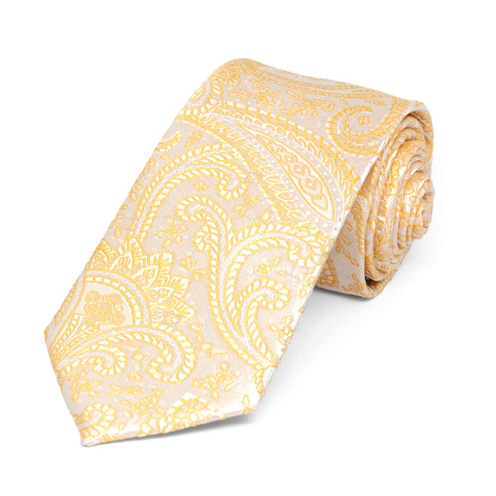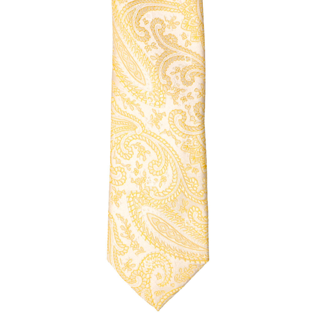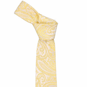 Whether it’s your wedding day or a day at the office, this slim, soft yellow paisley tie brings timeless style with a fresh, spring and summer vibe. The gentle yellow works beautifully with lighter suits and shirts but can also add a pop of color to darker suits, especially navy blue. Take a closer look, and you’ll notice the subtle mix of yellow shades in the pattern, making it easy to match with your wardrobe or wedding colors.