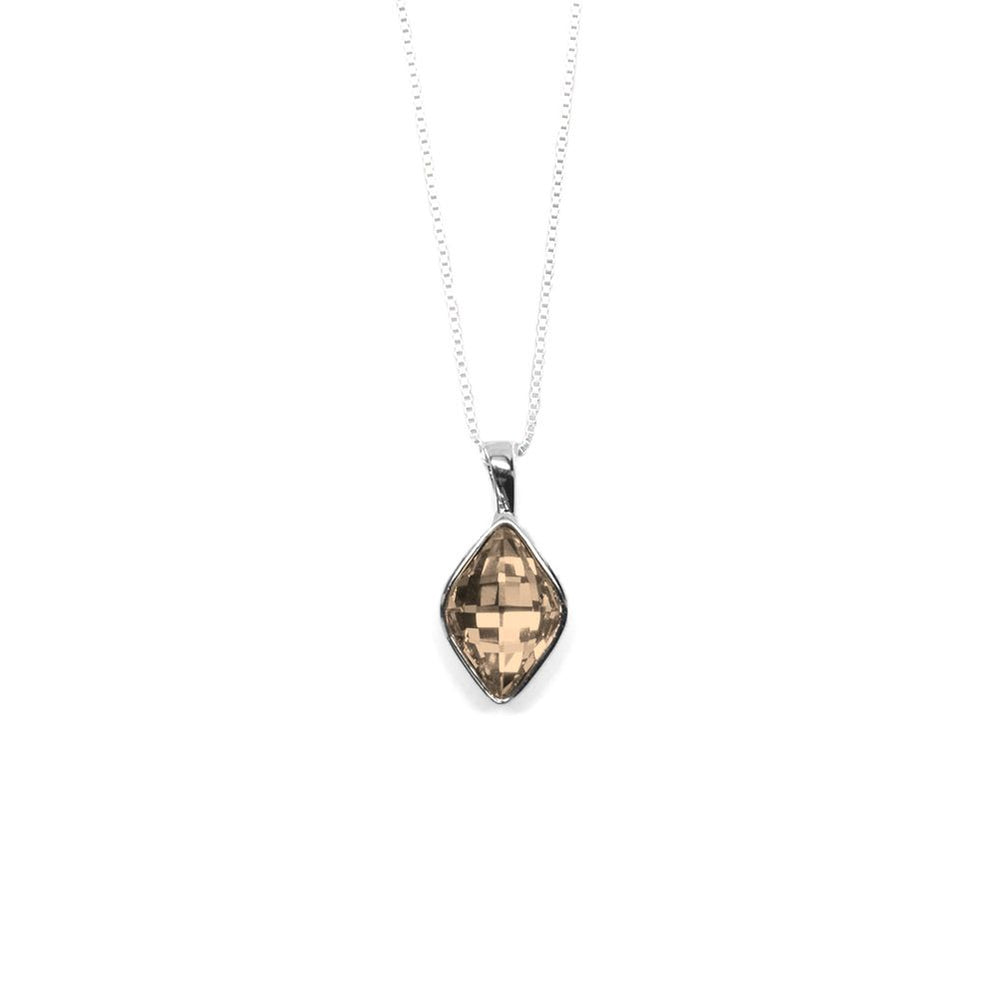 Perfect for weddings! Coordinate your bridesmaid's necklaces and groomsmen's ties with these simple, yet elegant sparkling champagne-colored necklaces. The rhombus shaped pendant is made with Swarovski® crystals and includes a sterling silver venetian chain. Each necklace has a unique code that can be entered at www.swarovski.com/crystals to verify the authenticity of the crystal.