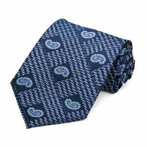 Blue is our go-to color for when we just can't decide what to wear. This men's necktie features an elegant dark blue paisley design. Made from heavyweight woven material and includes a matching pocket square. Great for everyday wear, or a special event.