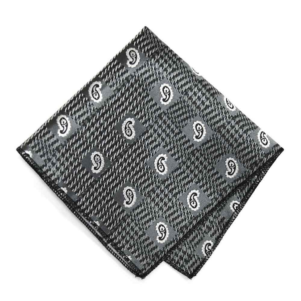 A special purchase pocket square, available while supplies last. The black and gray paisley design is made from heavyweight woven material. Great for a bold, everyday look. The pocket square is one-sided and measures 10-inches by 10-inches. Pair it with the matching bow tie, available for purchase.
