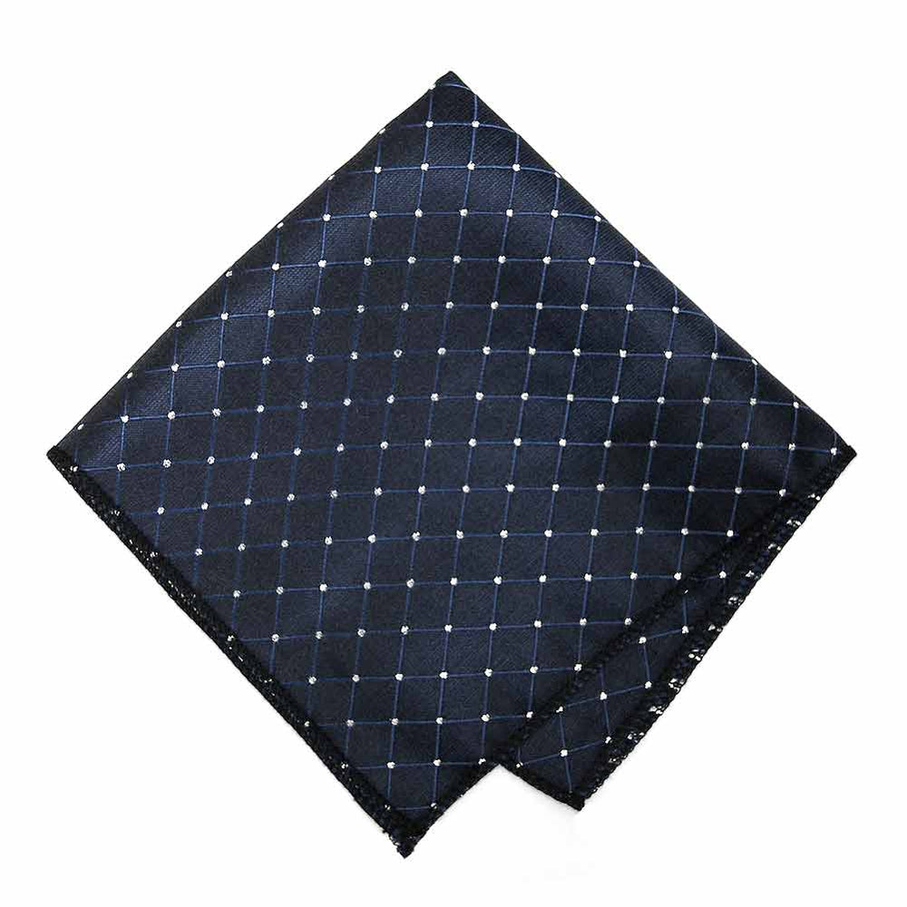 This navy blue special purchase pocket square is available while supplies last. The silver grid design is accented with Lurex threads for a shiny, metallic look. Perfect for formalwear or a night out. The pocket square is one-sided and measures 10-inches by 10-inches. Pair it with the matching bow tie for a complete look (sold separately).