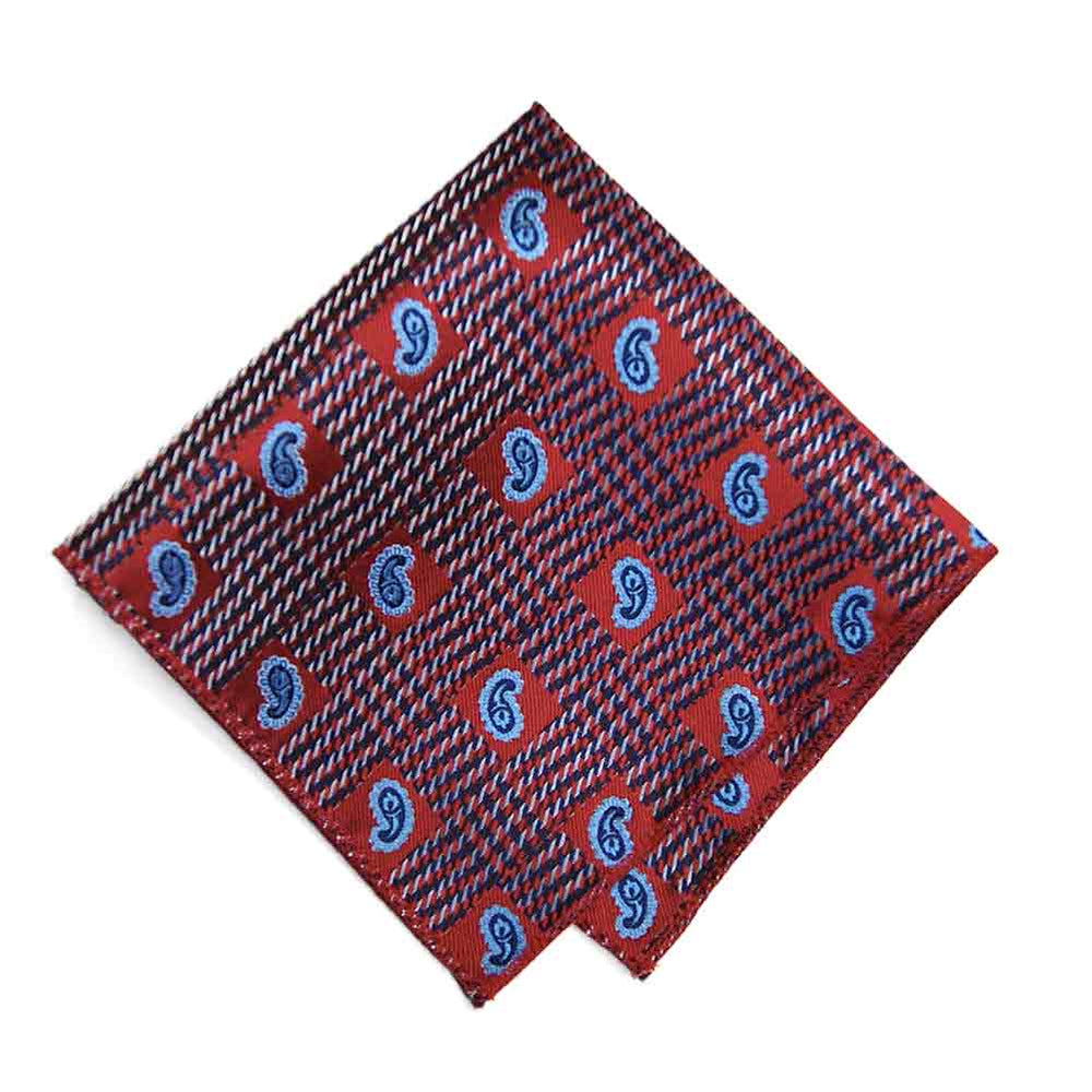 Smart and sophisticated! A special purchase pocket square, available while supplies last. The red and blue paisley design is made from heavyweight woven material. Great for a bold, everyday look. The pocket square is one-sided and measures 10-inches by 10-inches. Purchase the matching bow tie to complete your look.