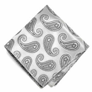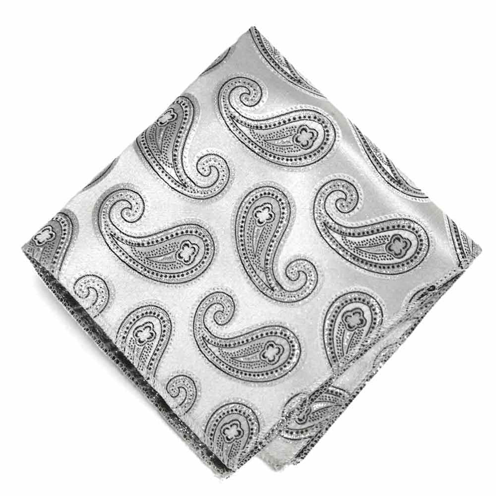 This special purchase pocket square is available while supplies last. The silver paisley design is accented with Lurex threads for a shiny, metallic look. Perfect for formalwear or a night out. The pocket square is one-sided and measures 10-inches by 10-inches.
