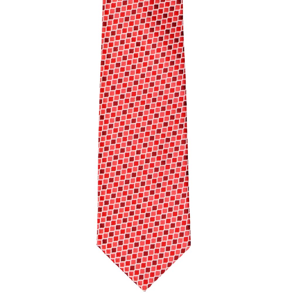 Try something different this Christmas with this festive slim necktie featuring a red and light red geometric design. Pair this necktie with a white oxford and slacks for a casual office look. Dress it up with a fitted gray or black suit and the included matching pocket square. Either way, this unique tie is sure to get you noticed!