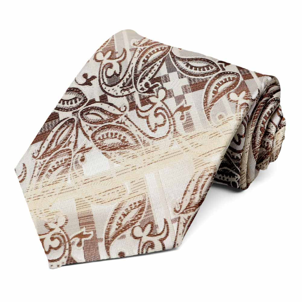 Add a touch of whimsy to your formal attire with this paisley necktie. Fascinating swirls of brown and tan highlight the white background of this tie. A matching pocket round is included, so it's easy to go from casual to formal. Pair this tie with a navy blue suit for a distinguished look.
