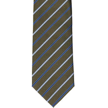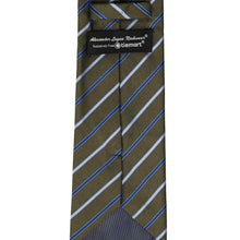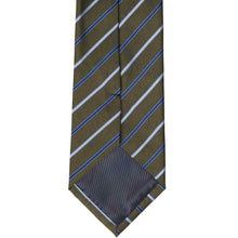 Looking for that perfect tie for graduation or your big interview? Look no further! With classic styling and an eye-catching pattern, this tie will help you stand out. Woven stripes of blue and gray on an olive green background make this tie a great pick for a navy blue or gray suit. A matching pocket square is included for the finishing touch on your ensemble.