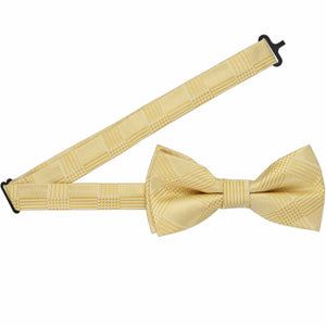 Sunny days and wedding season are the perfect backdrop for this sunflower yellow Glen plaid bow tie! The softened yellow tone adds a vibrant yet refined touch to your formal attire. It pairs effortlessly with any suit color—gray, navy, black, or tan—making it a versatile choice for special occasions. The subtle hue also transitions seamlessly into everyday business wear. With its timeless pattern and adaptable style, this bow tie is sure to become a staple in your wardrobe for years to come.
