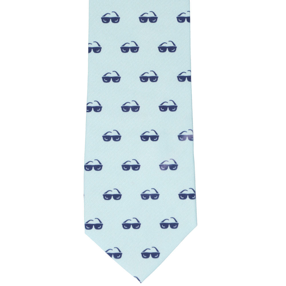 We can’t take our eyes off of this cool novelty tie. It features a spectacular sunglasses design in shades of blue. Wear it on a sunny day to protect your shirt from those strong rays.