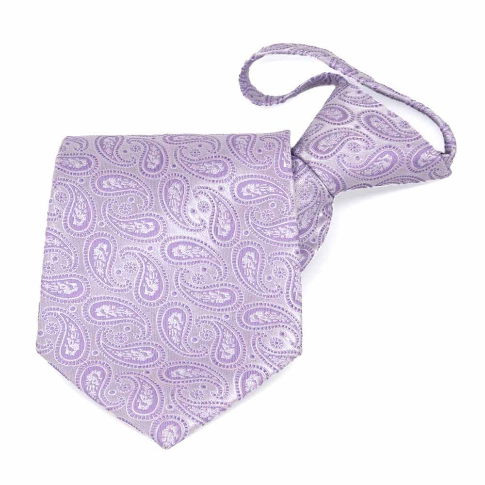 Welcome spring in style with this light thistle purple paisley zipper tie. The woven paisley design adds just the right touch of elegance, making it a perfect choice for Easter, weddings, or any special occasion. Whether you're dressing for a daytime event or an evening affair, this tie brings a refined yet fresh look. The pre-tied zipper design ensures a flawless knot every time, so you can focus on enjoying the moment. Pair it with a navy blue suit for a striking contrast, or keep it classic with gray, black, or tan—a versatile must-have for any well-dressed man!