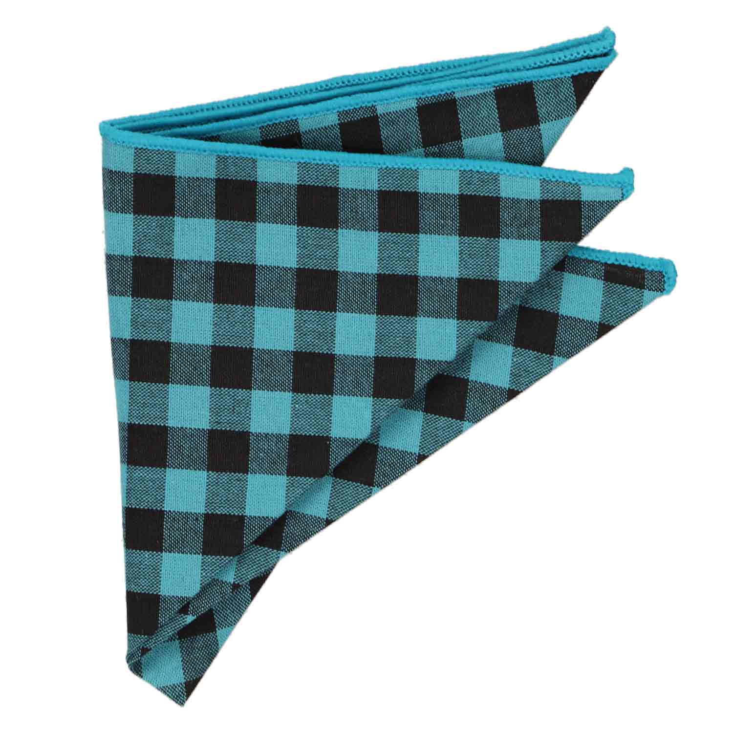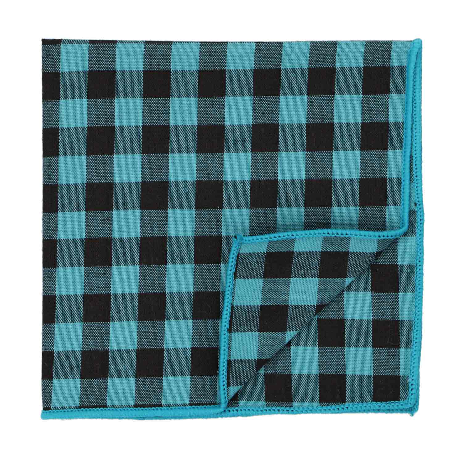 A timeless accessory for any wardrobe, this turquoise and black check pocket square is crafted from lightweight cotton and is detailed with a classic plaid print. The contrasting black and turquoise tones give it a modern look when worn alone and provide a sophisticated accent when paired with a solid color tie. (Try it with our black cotton/silk slim tie.) Whether you choose to go casual or formal, this pocket square is sure to be a reliable go-to.