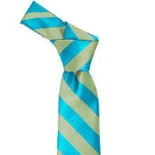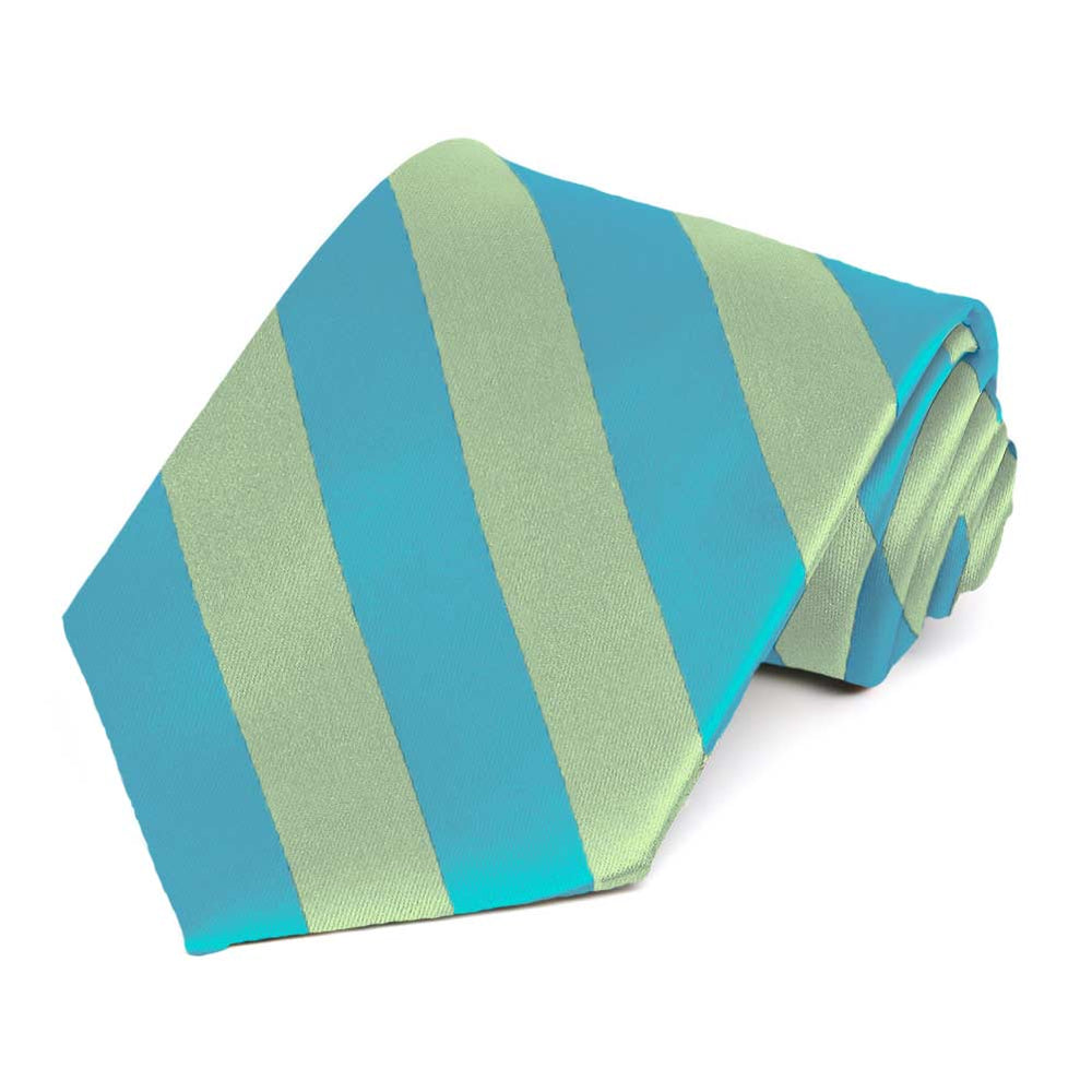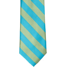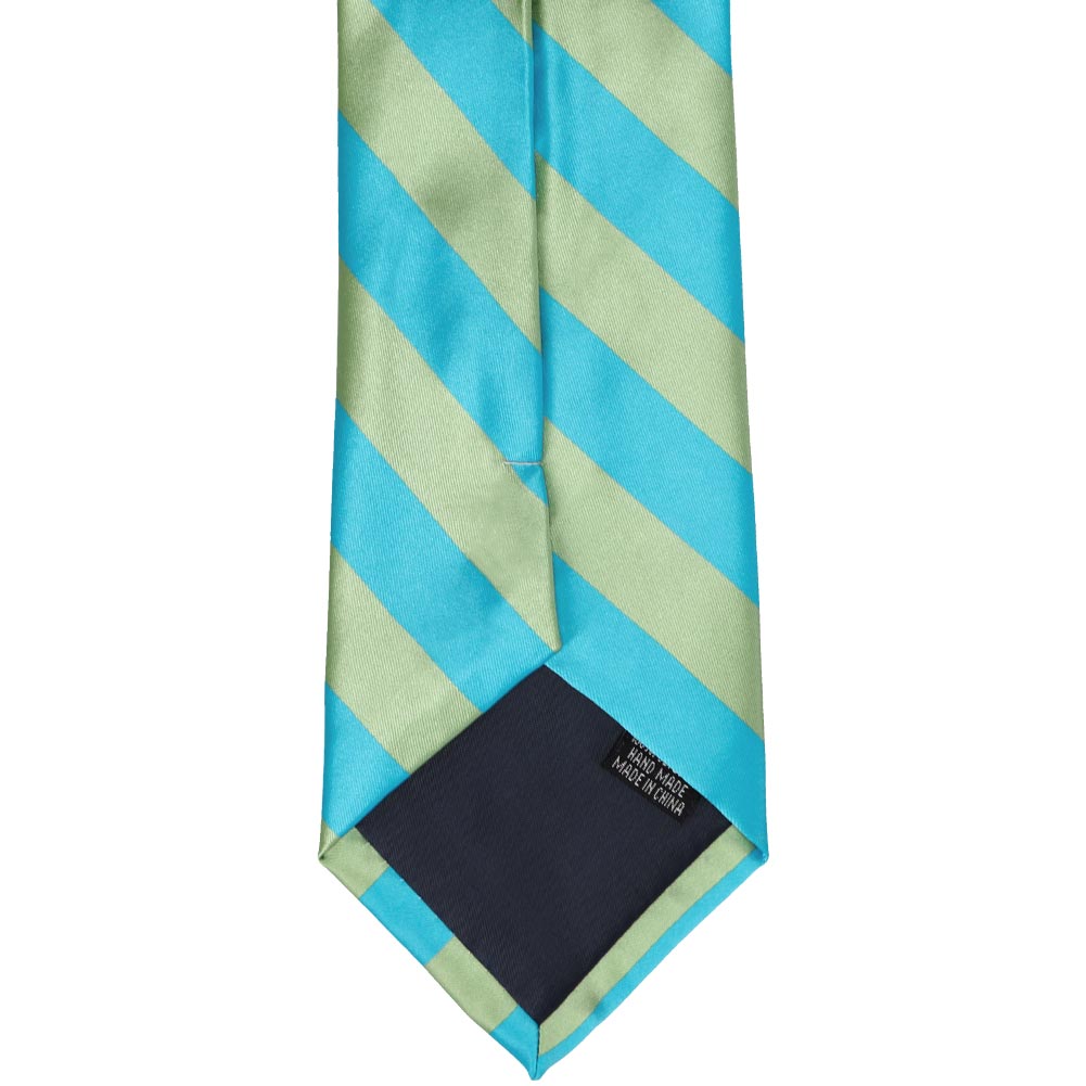 Add a bright splash of color to your look with this turquoise and clover green striped tie. Easy to match to wedding colors and to your existing wardrobe for spring and summer. Matching pocket squares available for purchase.