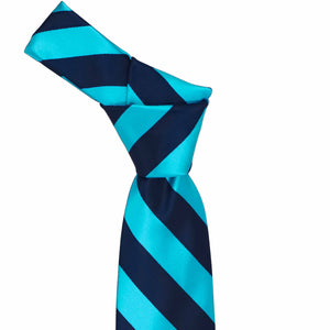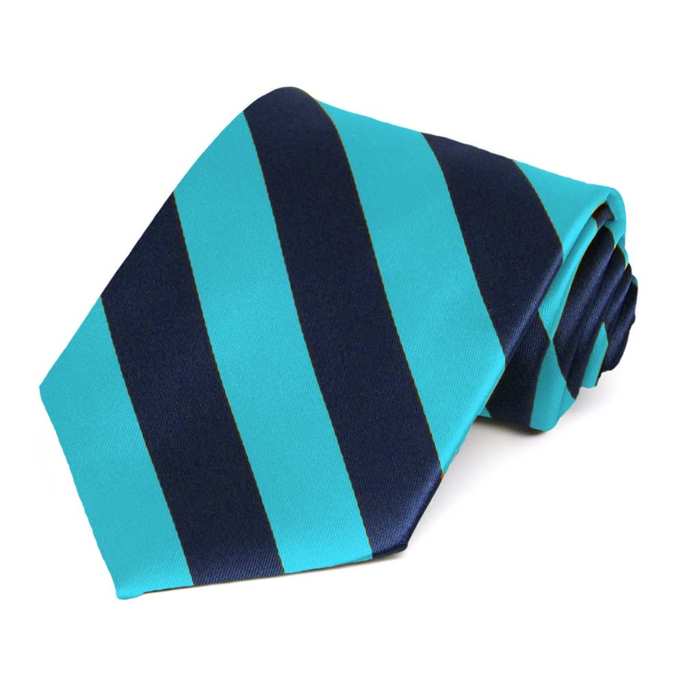 Attending a summer wedding or planning your own? This turquoise and navy blue striped tie is the perfect balance between fun and sophisticated. The navy blue stripes keep the tie traditional, while the turquoise stripes give it a pop of bright color. Speaking of those stripes, they're a classic 0.75-inch width, which is just the right size for being noticed without overwhelming. Check out the matching pre-tied bow ties, self-tie bow ties and socks, available for purchase.