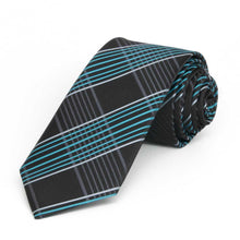Turquoise Jeffrey Plaid Slim Necktie, 2.5" Width